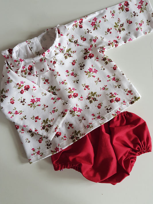 Barboteuse Innocence - imprimé fleurs rouge