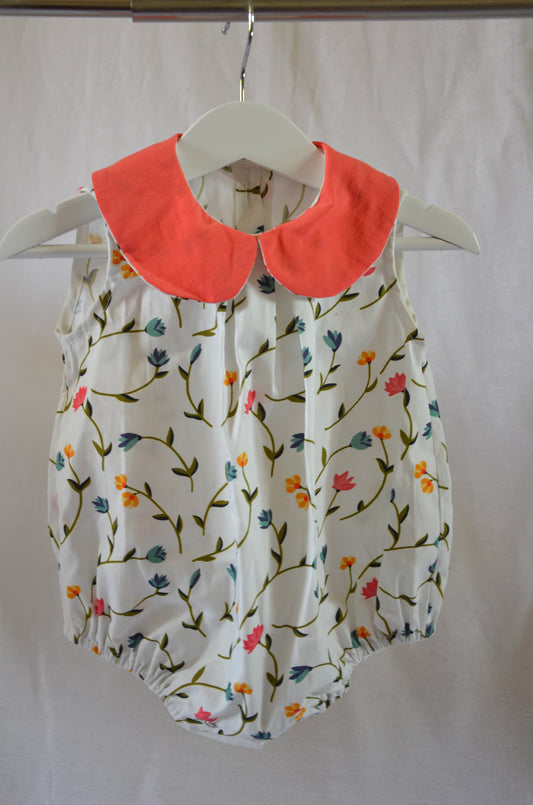 Barboteuse Innocence - Fleurs et corail