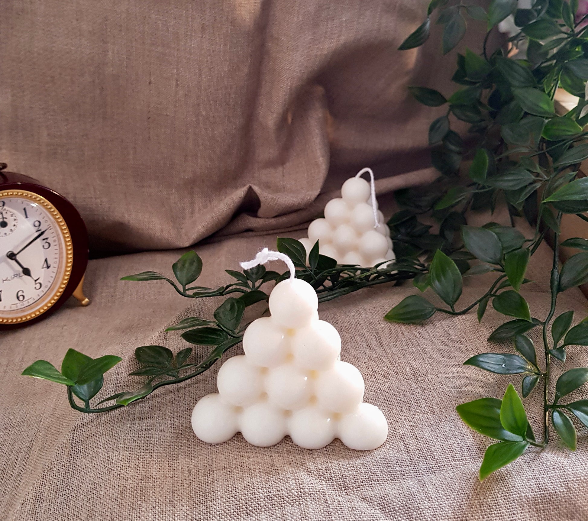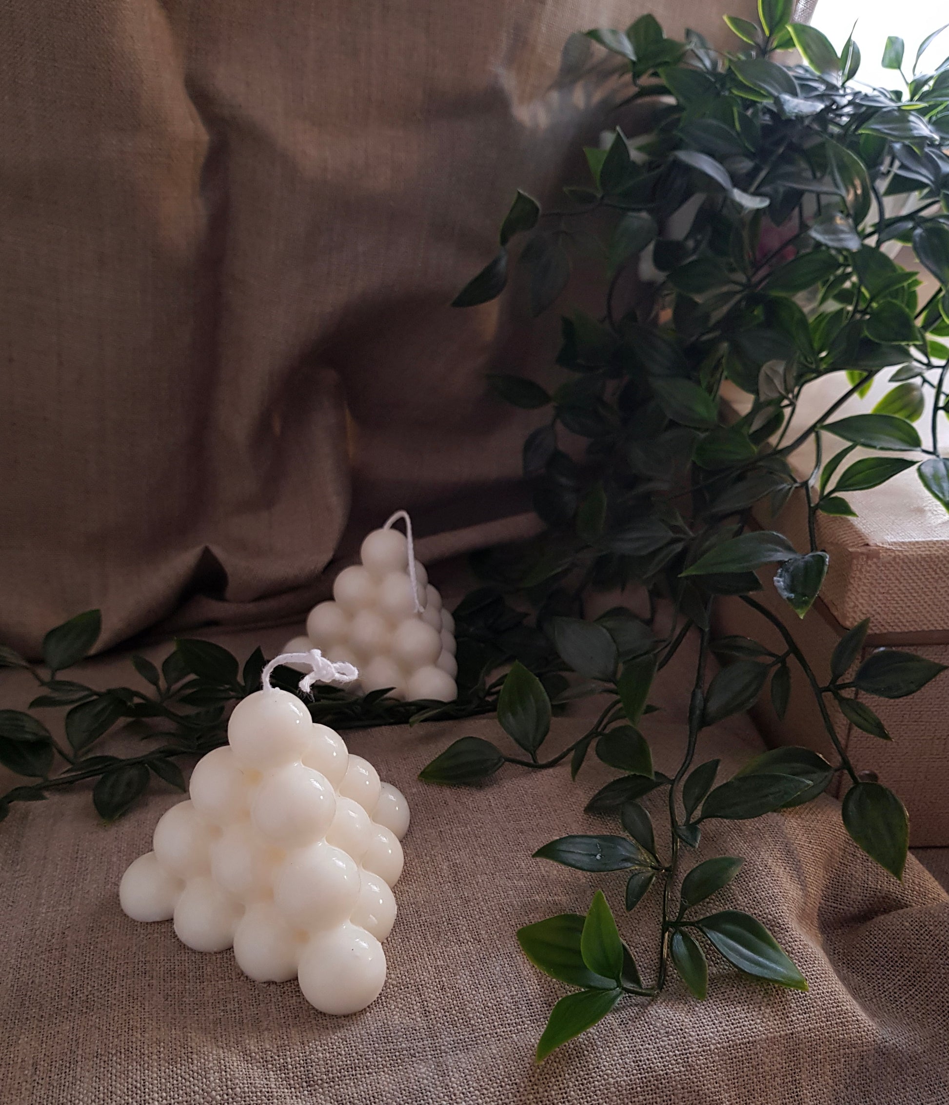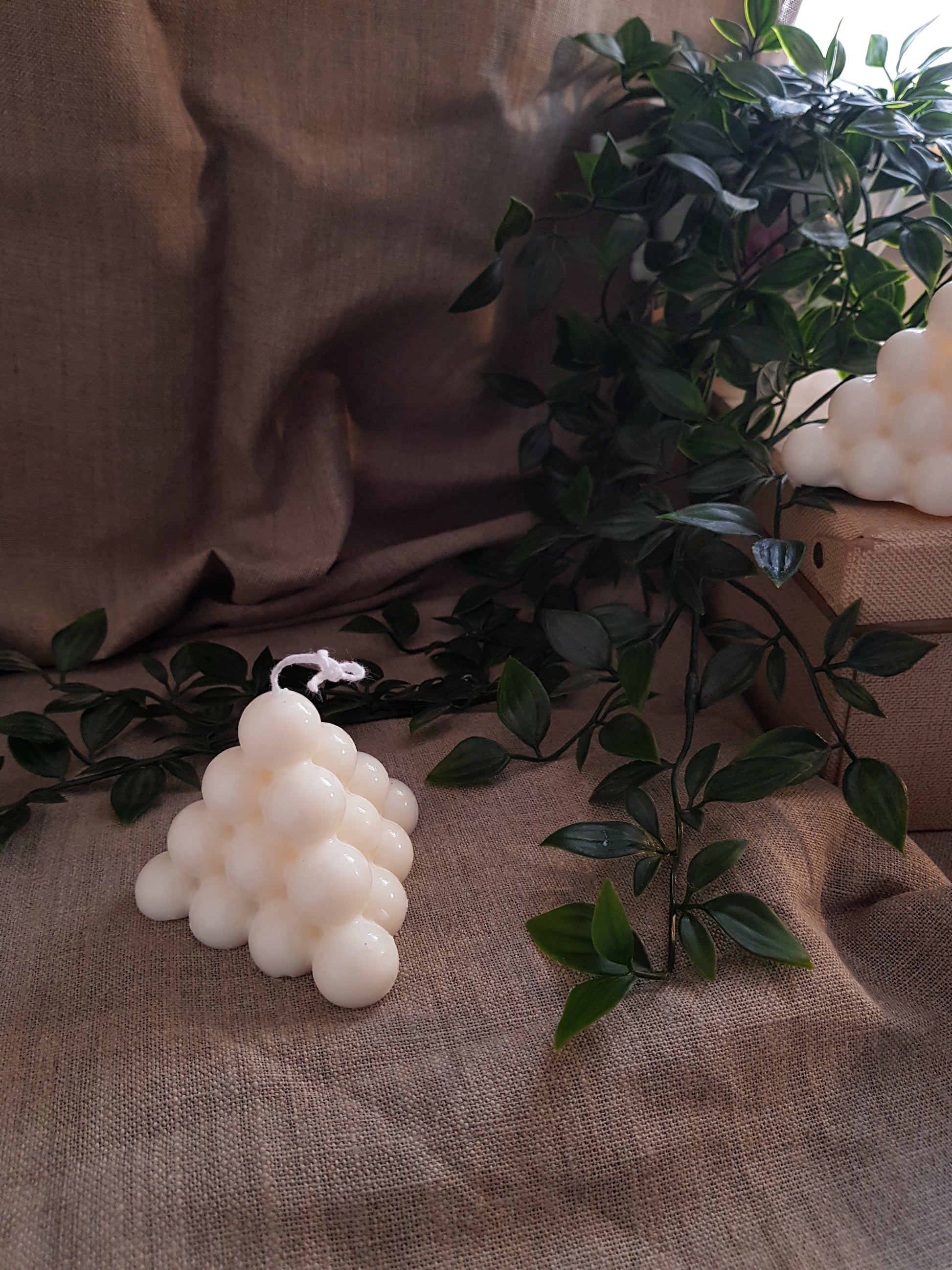 La collection Bubble est design, minimaliste et sa forme à la fois cubique et ronde lui donne ce côté original qui lui permet de s'intégrer parfaitement à vos intérieurs ! Elle est 100% vegan, faite en cire de soja et coulée à la main par mes soins.